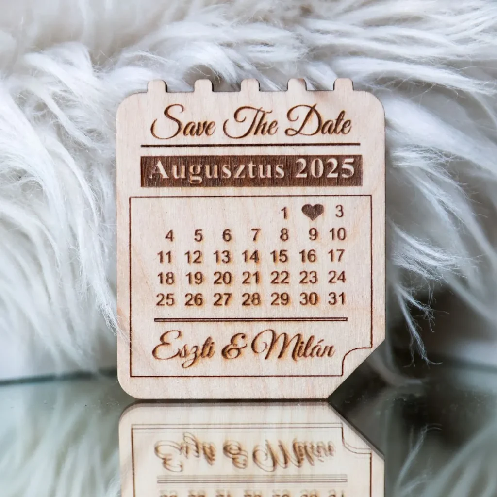 A gravírozott Save the Date naptár elsőre egy szép, kézzel fogható emlék a nevetekkel és dátumotokkal. De most jön a lényeg: